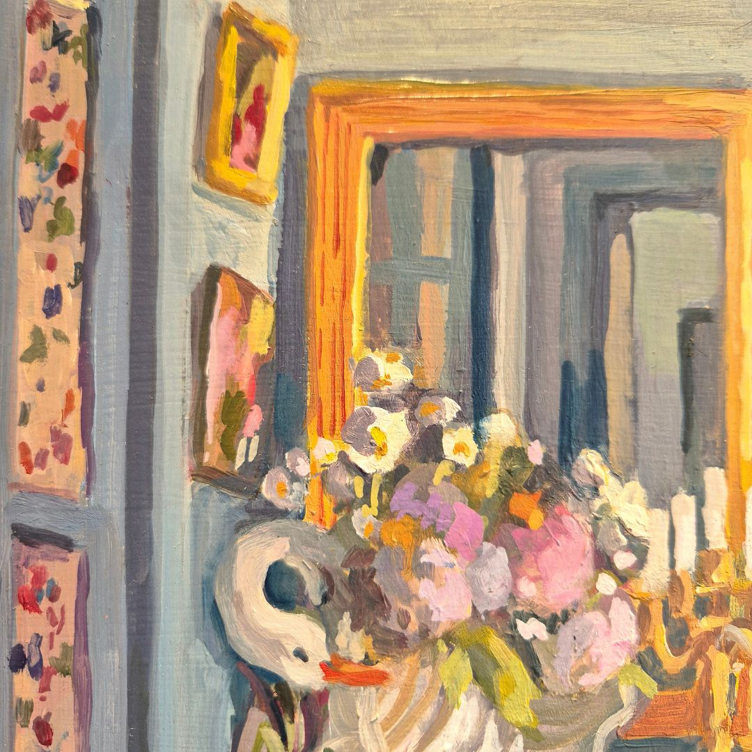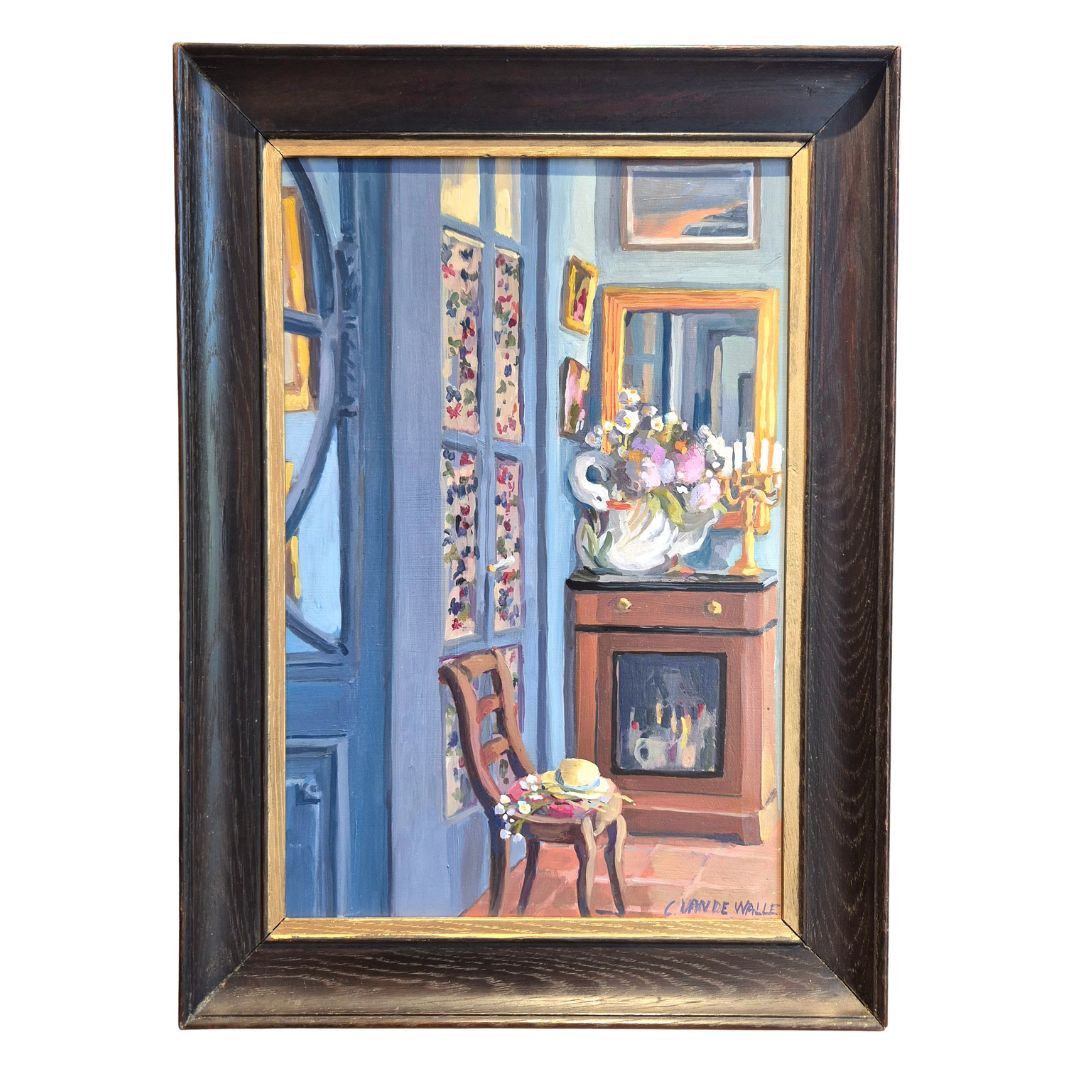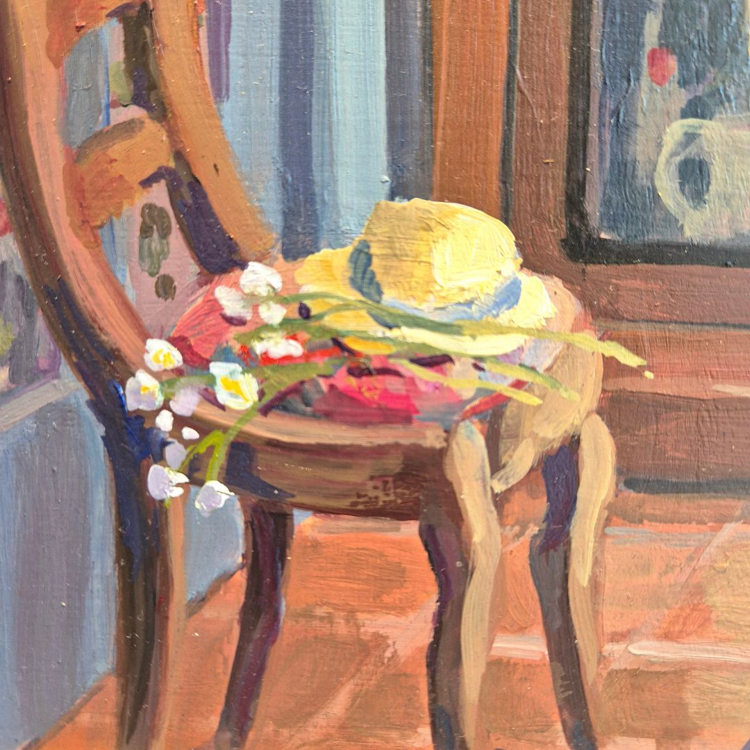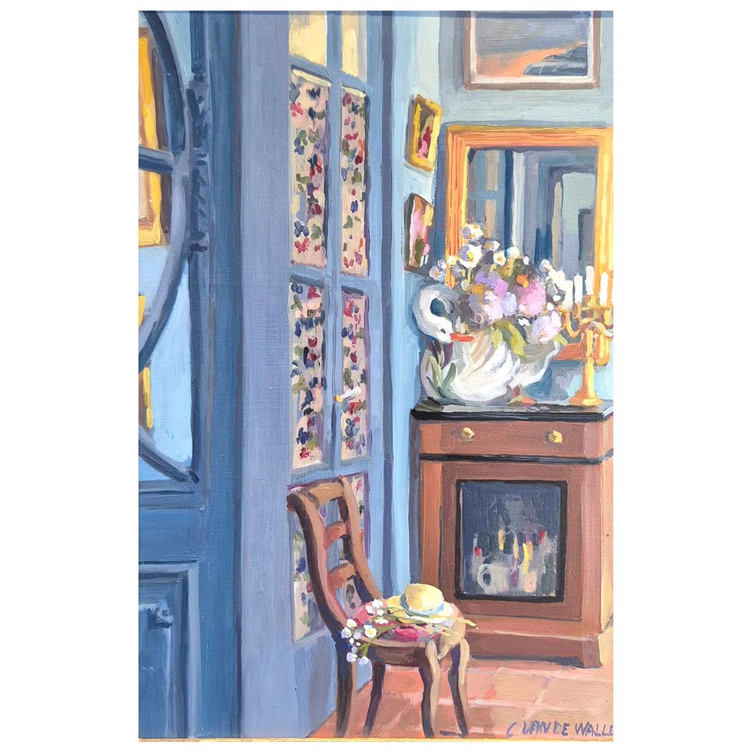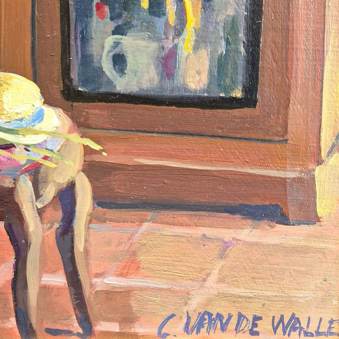 Huile sur panneau de l'artiste Claude Van de Walle, qui trouve son inspiration dans le jardin de sa propriété en Normandie, où elle peint avec éclat et simplicité son univers champêtre.