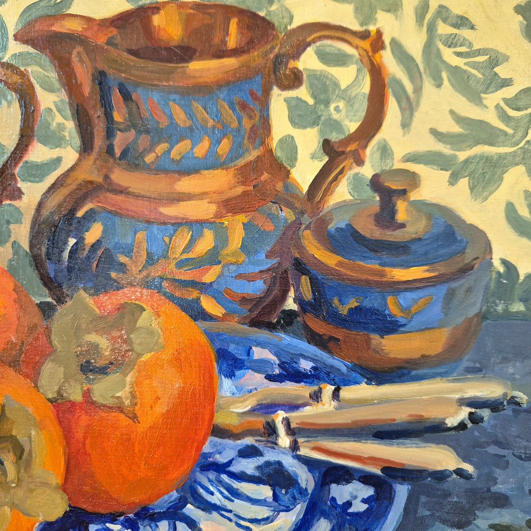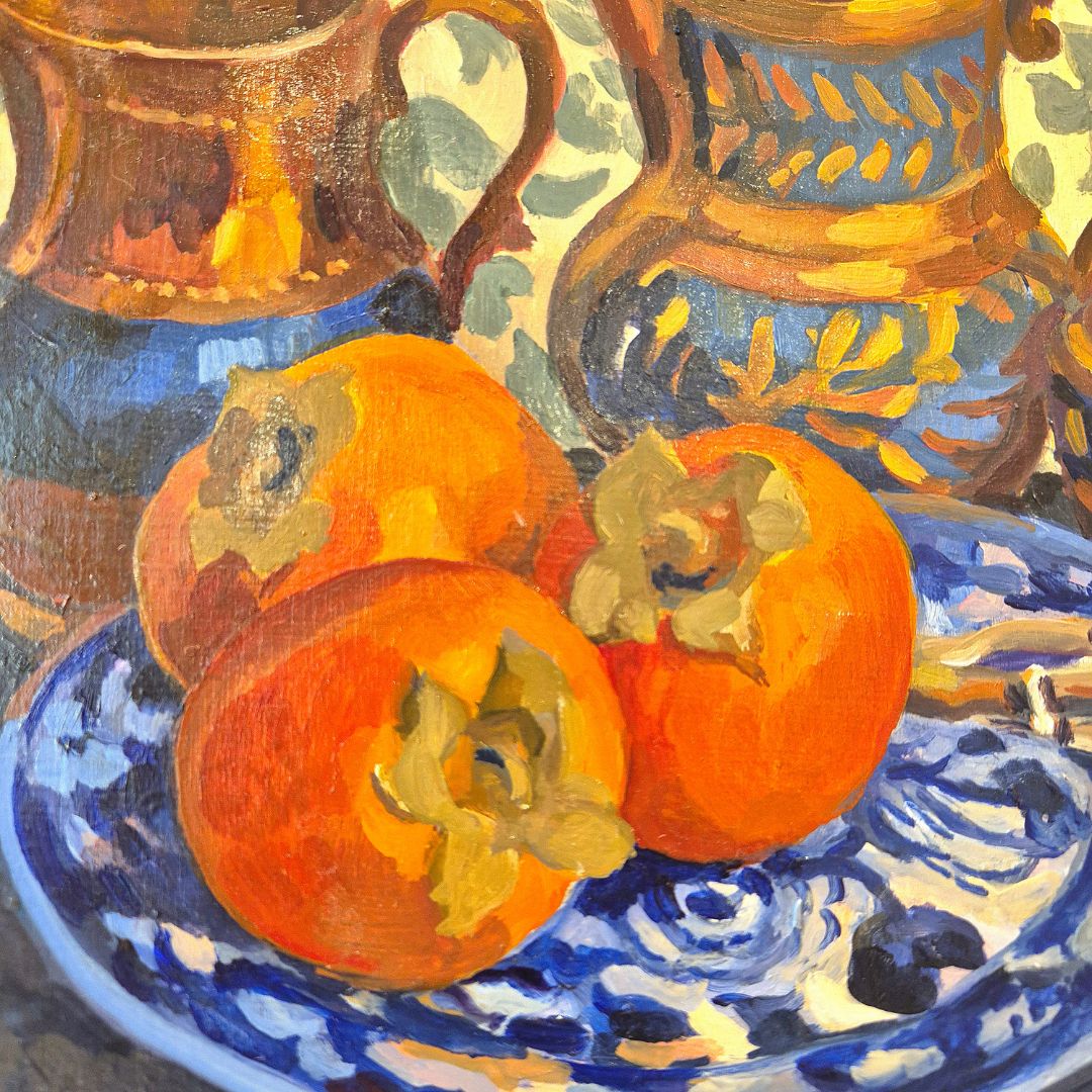 « Kakis, vase en Jersey », huile sur panneau de bois, de Claude Van de Walle
