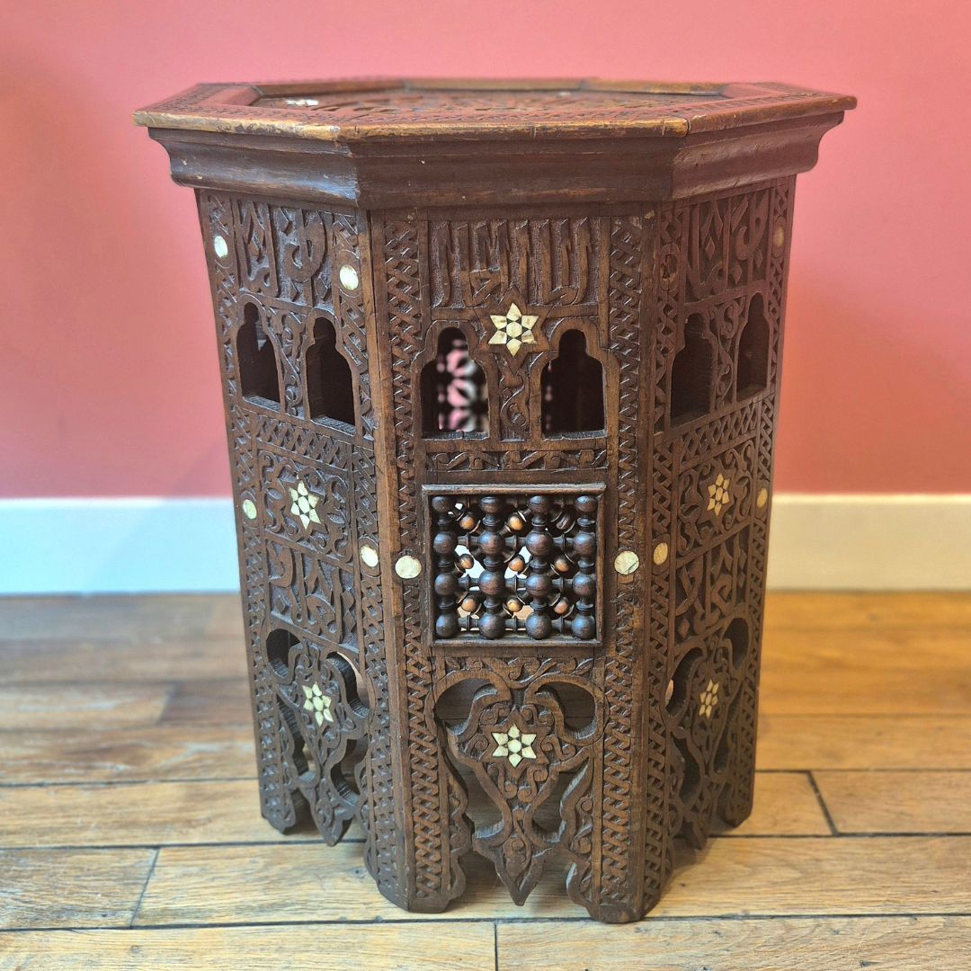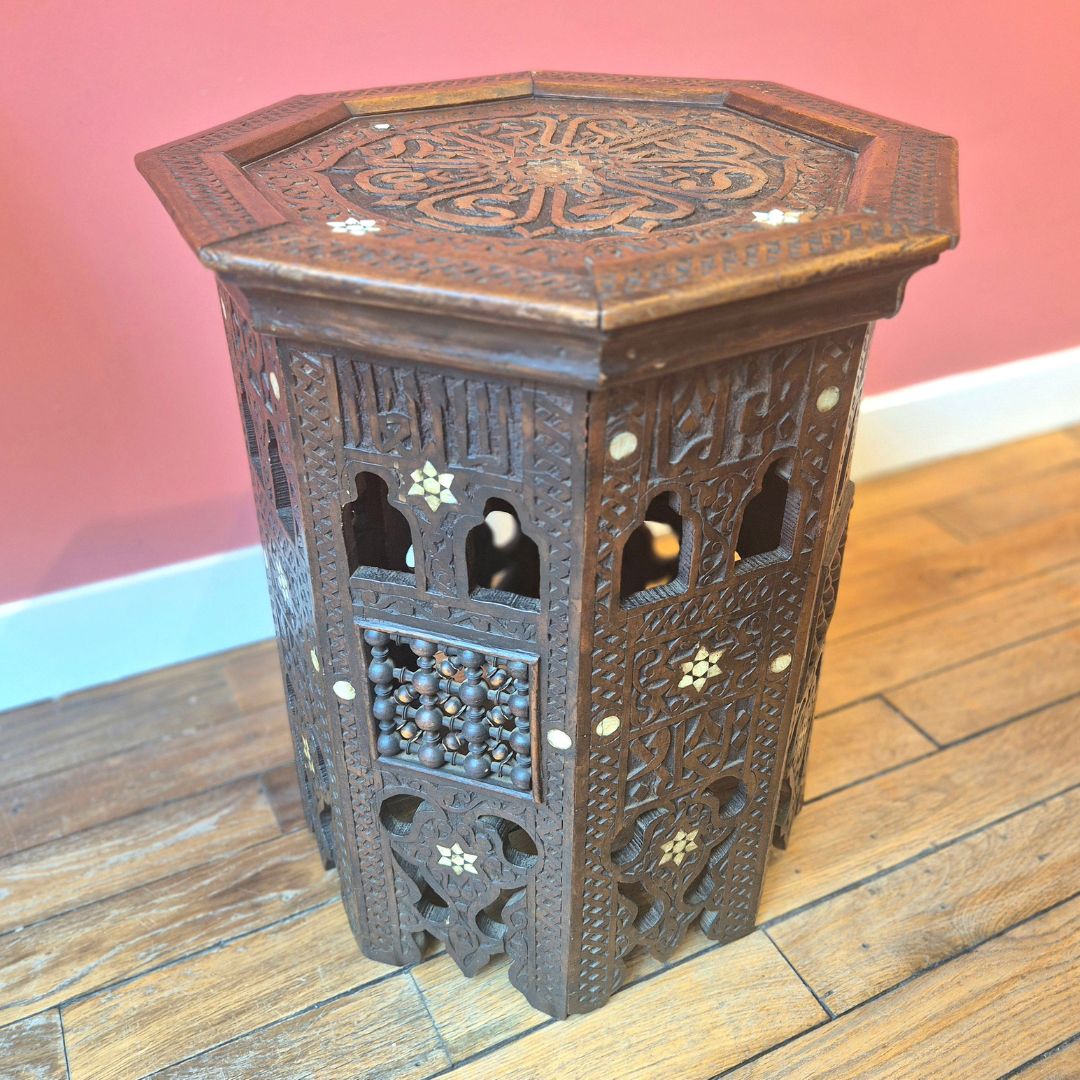 Table à thé syrienne octogonale en bois et incrustations de la fin du XIXème siècle.